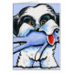 Drawing by Andie of a black and white Shih Tzu clutching a sock monkey toy. Fun gift for Shih Tzu dog lovers and breed enthusiasts.