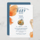 Watercolor orange flowers and blue and orange pumpkin. L'il pumpkin on the way. Baby Shower Invitation.