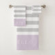 Lilac and Grey Stripes Monogram | Editable Colours Bath Towel Set
