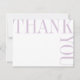 Soft purple typography feels modern and fresh in a unique and striking layout that literally pushes the borders of the page. A blank back side leaves ample space for a thoughtfully hand written note of thanks.