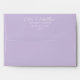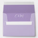 Lilac wedding invitation envelope with return address at the front and lavender background colour inside decorated with white script couple initials