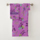 Lilac and Yellow Funny Mushrooms Pattern Baby Name Bath Towel Set