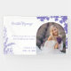 A wedding announcement featuring a smiling bride holding a bouquet of lavender flowers. The text reads, "Beautiful Beginnings - 'Love is composed of a single soul inhabiting two bodies.' Callahan & Ava, July 09, 2024." Lavender floral graphics adorn the card's edges.