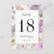 Elegant table number cards featuring a floral watercolor background of lilac, soft pink, and grey flowers. Inset muted mauve border with white background frames your messages. Customise this table number card with your personalised wedding date, names, and table numbers. Back side design is same and front side. Designed to coordinate with our Lilac Blooms floral wedding collection suite.