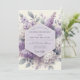 Delicate lilac and white blossoms are artfully arranged with soft grey-green foliage, creating an airy, ethereal feel. The romantic color palette evokes a sense of gentle elegance and dreamy charm, perfect for a sophisticated celebration.
