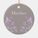 Sweet and dainty Butterfly Floral Ornament with a muted dusty grey background and light purple butterflies and floral vine embellishments. This elegant floral ornament is chic with girly flair and would make a lovely decorative gift! Easy to customise, simply add the personalised text of your choosing in the text fields provided. Click on the "Customise It" button to find additional personalisation options.