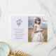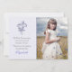 A lovely photo card with lilac cross embellished with flowers and bow on soft lilac floral background. Shown as a First Communion thank you photo card, but can be customised for any religious occasion.