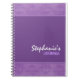 Lilac Damask notebook with elegant damask patterned borders against a purple background.
