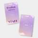 A chic, modern, lilac-to-purple gradient with stars and clouds is the backdrop of this event staff name badge. Personalise the name badge with your company/event logo, employee name, and function or other text.