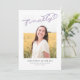 This modern graduation announcement features the word finally written in lilac over a single photo. The back of the card can be used for additional text or as an invitation.
