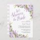 Affordable custom printed bridal shower invitations. This pretty feminine design has a watercolor floral border with pastel purple flowers and greenery. Personalise the design with your bridal shower party details. Reverse side has a purple watercolor stripe pattern or use the space to add additional text and photos. Click Customise It to choose any background colour and edit the text fonts and colours to create unique one of a kind spring or summer wedding shower invitation.
