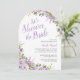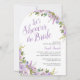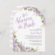 Affordable custom printed bridal shower invitations. This pretty feminine design has a watercolor floral border with pastel purple flowers and greenery. Personalise the design with your bridal shower party details. Reverse side has a purple watercolor stripe pattern or use the space to add additional text and photos. Click Customise It to choose any background colour and edit the text fonts and colours to create unique one of a kind spring or summer wedding shower invitation.