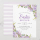 Affordable custom printed Easter brunch party invitations. This pretty feminine design has a watercolor floral border with pastel purple flowers and greenery. Personalise the template with your event details. Reverse side has a purple watercolor stripe pattern or use the space to add additional text and photos. Click Customise It to choose any background colour and edit the text fonts and colours to create unique one of a kind Easter dinner invitation.