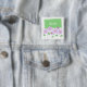 A square button with lilac flowers and a green tag. Customise the button with your special name, background colour, among other options.