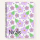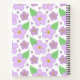 A notebook built with a lilac flower pattern. Customise it with your own text, background colour, among other options.
