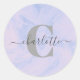 Lilac Lavender Marble Elegant Monogram Name Classic Round Sticker