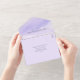 🌿 The perforated RSVP section, set against a lilac backdrop, ensures quick and effortless responses, simplifying the RSVP process for your guests. Additionally, the exterior displays the names of the couple with the "Kindly deliver to" instruction at the bottom, making it ready to be mailed back as a postcard.