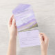 Elevate your invitation experience with our Lilac Night Sky Mountain Landscape All in One Invitation. This innovative design seamlessly combines an invitation, RSVP card, and envelope into one convenient foldable piece. The interior features the invitation text while below, a perforated section houses the RSVP card for easy removal.