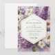 Embrace a romantic aesthetic with this elegant floral design. Lush, painterly clusters of lilac blossoms create a soft and dreamy atmosphere. Accents of creamy white flowers and subtle green leaves add depth and contrast to the beautiful shades of purple. This artistic composition is perfect for a spring or summer union.