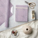 This pattern is modern and on-trend with dots of faux silver glitter on a pastel purple background.