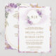 Lilac Purple Floral Gold Marble All in One Wedding Invitation