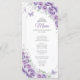 Lilac purple, silver and white Quinceanera celebration slim double sided program and menu card. Features, script font, silver butterflies, watercolor roses and tiara. Perfect for an elegant princess style glam celebration. Personalize with your own details.