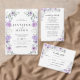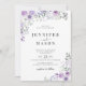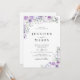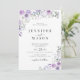 Invite your guests in style with this elegant watercolor floral wedding invitation, featuring delicate flowers in vibrant lilac, purple and lavender summer hues intertwined with eucalyptus leaves. Perfect for a garden, rustic barn, or outdoor wedding, this charming floral design captures the beauty of nature while adding a touch of timeless romance.
