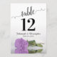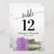 These beautiful table number cards will make it easy for your guests to find their seats at your wedding reception. Features a gorgeous design with lacy script calligraphy and a single lilac purple coloured rose lying on its side with ripples waves and reflections. There is space for the couple's names and wedding date.