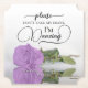 This wedding coaster is elegant, stylish, and fun! It features a photo of a single long-stemmed light purple or lilac coloured rose lying on its side mirrored in a pool of water. The text reads "Please don't take my drink, I'm dancing" written in modern script lettering. There is space for the names of the couple and wedding date at the bottom. Great memento for your guests and also a practical way to let the wait staff know not to clear the drinks just yet!