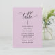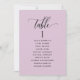 Help your guests find their table with this elegant modern lilac pastel purple seating plan cards with guests' names. Clear space all around giving you the liberty to use clips or punch holes for hanging displays, or use a table holder/frame. Double-sided cards so guests can look from both, front and back for their names. Lilac background and black text. Modern handwritten calligraphy details. Several colour options are available. Have all table numbers in the same colour or mix colours according to your event's colour theme. Part of our "Joyful Floral" collection with a variety of coordinating products available, including table number cards and menus. Visit the collection by category on this product page or browse the entire collection in one glance at: https://www.zazzle.com/collections/joyful_pastel_floral_collection-119953493901910528