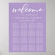 This lovely lilac wedding seating chart features beautiful white typography on a soft purple background for a spring ceremony in the afternoon. Lavender pastel decor is a delicate colour choice for an elegant garden occasion.