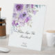 beautiful lilac purple floral welcome sign, table sign for weddings and bridal showers. Elegant and modern bridal shower table sign, wedding floral table sign.