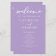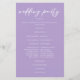 This lovely lilac wedding program features beautiful white typography on a soft purple background for a spring ceremony in the afternoon. Lavender pastel is a delicate colour choice for an elegant garden occasion.