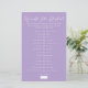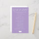 A lilac purple bridal shower game Would She Rather for a spring afternoon party. Order these pretty paper sheets for a fun bride trivia game friends. A fun customizable bachelorette party game with a minimalist solid color scheme.