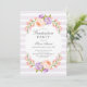 Affordable custom printed graduation party invitations personalised with your event details. This pretty botanical design features a watercolor frame of peach and lavender flowers on a pastel purple striped background. Use the design tools to customise the text, edit the fonts and colours or add your own photos to create an elegant spring floral graduation invitation.