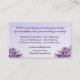 Lovely lilacs are the theme of this elegant floral wedding consultant business card. The front has a border of pink and mauve lilac sprays on a gradient pale purple background. The back has more lilacs and the same lovely pale purple gradient. All text can be customised for your special business.