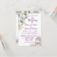 This beautiful invitation features soft lilac floral splashes with wildflowers. A whimsical summer delight arrangement accompanied with fancy script lettering perfect for that elegant look. No matter what the season, this gorgeous invite is ideal. Make this invite your own by editing the information to suit your own needs. Looking for more wedding invitation ideas? Check out our beautiful collection.