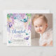 Lilacs and Butterfly | Photo Birthday Invitation - Elegant and modern floral invitation featuring watercolor lilacs and butterflies with lush green leaves with modern & free hand-lettered typography font. The reverse side of the invitation features lilac petals and butterflies. Personalise with your own wording/details! For further customisation: (1) Please click the "Customise it" button and use our design tools to modify this template. Not all artwork can be modified. (2) If you prefer thicker papers, you may consider choosing the Matte Paper Type.