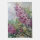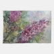 This is a porcelain painting of lilacs by B.A.Eberly that has been applied to a kitchen towel.