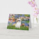Water Lilies by Impressionist Claude Monet (1914), adapted to include a lemon and white Japanese Chin. One of many water lily paintings, this one has red or bright pink lilies in the pond. It sold at auction in 2008 for over 70 million.