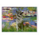Water Lilies by Impressionist Claude Monet (1914), adapted to include a Norwegian Elkhound. One of many water lily paintings, this one has red or bright pink lilies in the pond. It sold at auction in 2008 for over 70 million.