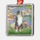 Lilies 2 - Tri Australian Shepherd Metal Tree Decoration