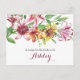 Lily flower bouquet bridal shower recipe card (personalised with the bride's name on the front). This lily recipe card is a good choice for a summer wedding shower or a spring wedding shower. This lily bridal shower recipe card features beautiful watercolor lilies in various colours and types (tiger lily, day lily). This elegant lily recipe card has a colourful painted look. The colours are burgundy, pink, yellow, orange, and green.