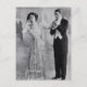 English Edwardian actress Lily Elsie scene in "Summertime" production. Her suitor holds her hand as she leans away with a flirty look. Vintage black and white photograph in public domain.