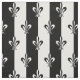 Black and white alternating stripes pattern with the fleur de lis, which is a simplified lily flower symbol used by French and European royalty, and a symbol of the town of New Orleans and the Mardi Gras festival in February after lent.