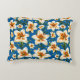 Floral throw pillow with a stylish organic lily floral design of white, lily flowers on a blue background. An elegant and contemporary throw pillow for your bedroom or favourite chair, accent pillow for your family room or living room couch, or a thoughtful modern home gift for any occasion.