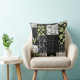 A chic Faux Patchwork Throw Pillow or Cushion in the Art Nouveau style, with Lilies-of-the Valley on a Black background; from the Posh & Painterly 'For the Love of Lilies' collection.