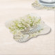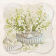 A still life of tiny white lily of the valley flowers in a dish surrounded by lace. Photography by Sandra Foster © - Sandra Foster Designs.