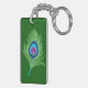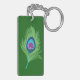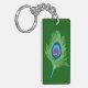 Lime and Blue Peacock Feathers on Emerald Green Key Ring