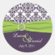 This 1.5" diameter sticker/envelope seal matches the lime green and purple damask invitation shown below. There is also matching postage to allow you to mail out a beautifully coordinated invitation. You can change the text to say whatever you want, and you can also change the sticker size to be 3 inches in diameter, which would be ideal to adorn your wedding/party favours. If you require any other matching items in this design, please email me your request to niteowlstudio@gmail.com.